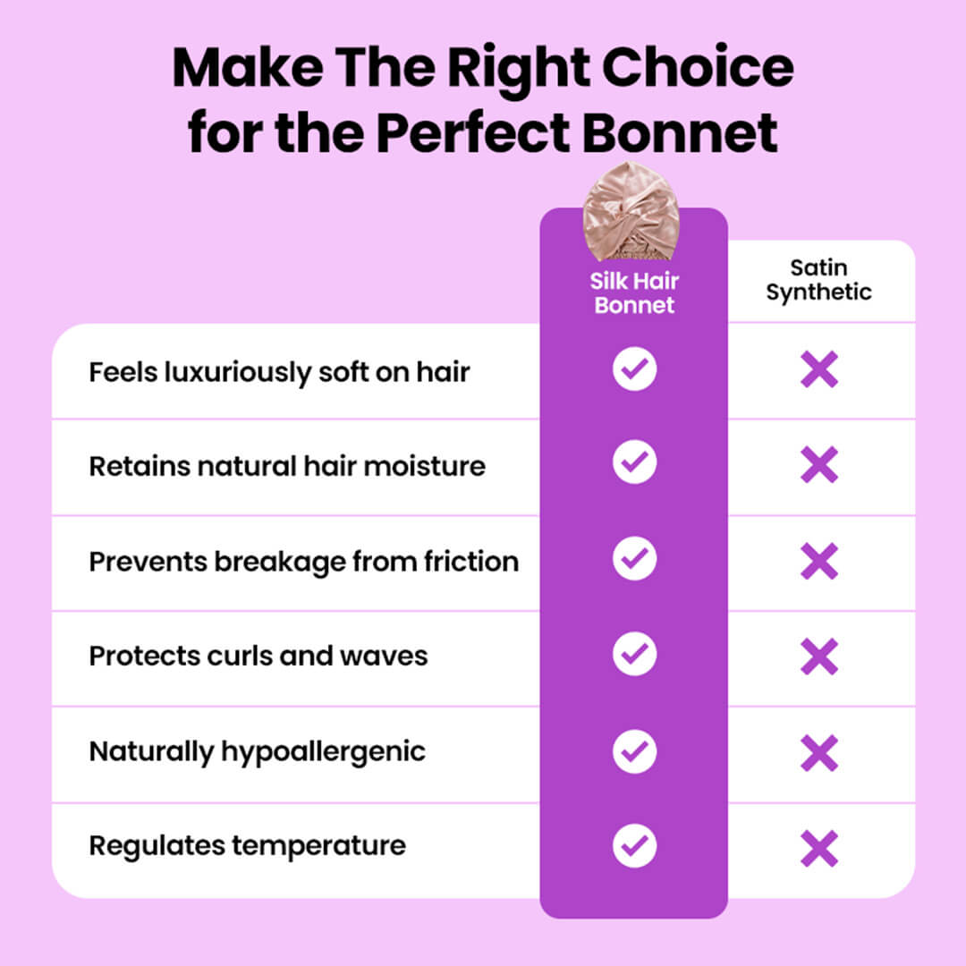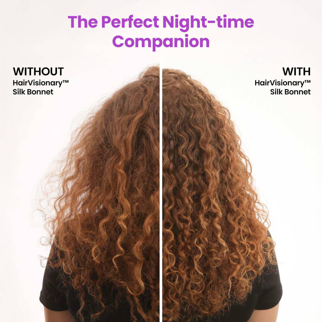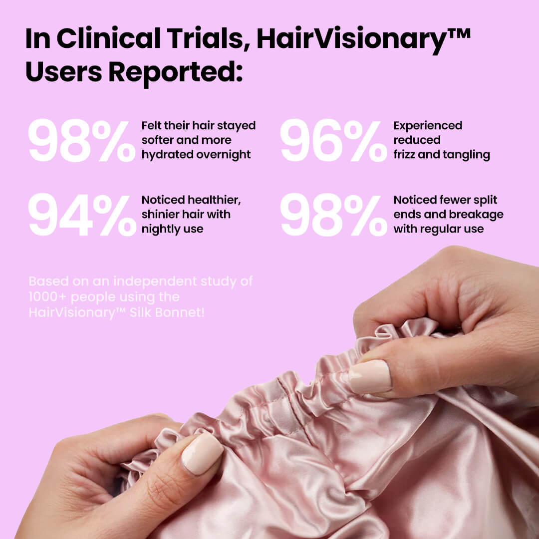 Cotton or polyester pillowcases can cause friction and absorb the natural oils and moisture from your hair, causing dryness, breakage and frizz. HairVisionary™ Silk Hair Bonnet has a glossy surface which reduces frictions while you move in your sleep